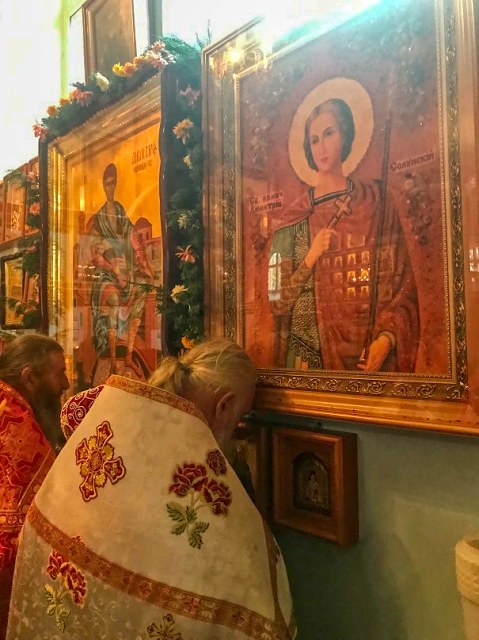 В этот день на приходе совершается празднование иконе Божией Матери «Милосердия двери» и памяти святого преподобного Димитрия Басарбовского, привезенных нашим настоятелем с паломнических поездок. Перед иконами были прочитаны молитвы и спето величание.