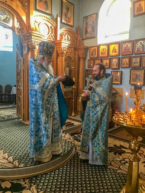18 ноября в день празднования в честь иконы Божией Матери "Отчаянных единая Надежда" Божественную Литургию в приделе иконы Божией Матери «Мати Молебница» храма «Спорительницы хлебов» совершил благочинный Чаплинского округа наш настоятель протоиерей Иоанн Канинец в сослужение настоятеля храма святых мучениц Веры, Надежды, Любови и матери их Софии с. Надеждовка священноинока Галактиона (Гайналий). В своей проповеди отец Иоанн сердечно поздравил всех с праздником и пожелал каждому благодатного заступничества Божией Матери.
