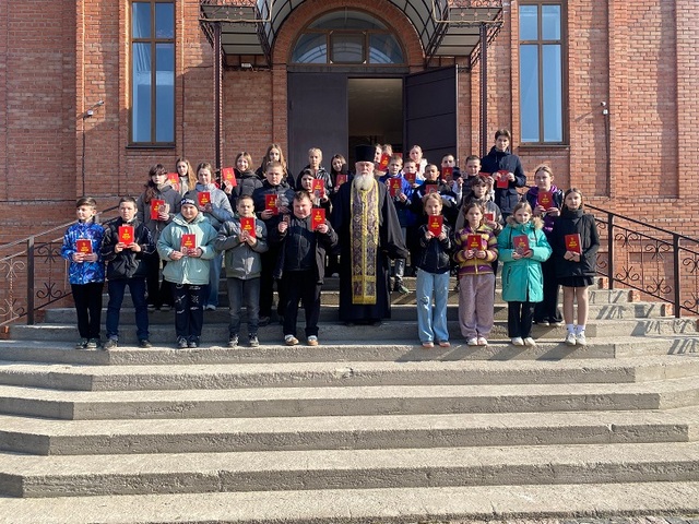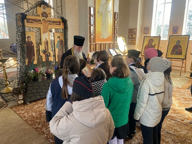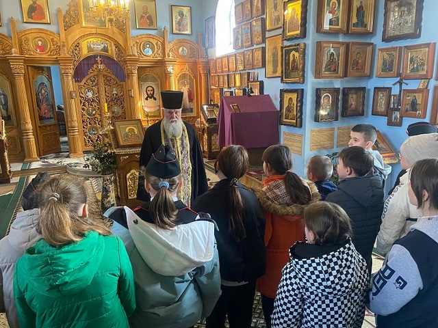 Отец Иоанн тепло приветствовал их, отслужил молебен и в содержательном слове рассказал ребятам как правильно себя вести в храме, о внутреннем устройстве дома Божьего и его святынях. После беседы батюшка подарил гостям Святое Евангелие и пригласил их с родителями на богослужение.