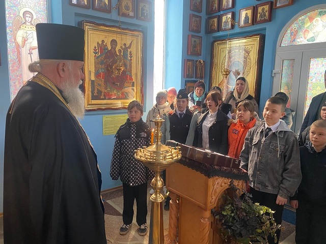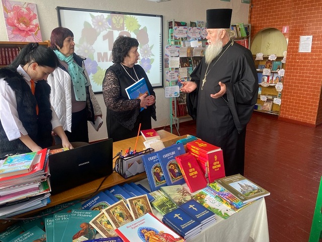 Затем он посетил школу в с. Хлебодаровка, встретился с ее руководством и передал для школьной библиотеки православную литературу.