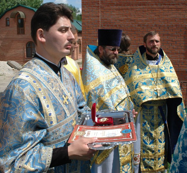В храм преподобного Сергия Радонежского Святейшего Патриарха Московского и всея Руси Кирилла в Скадовскую епархию Святыню сопровождают Первый заместитель председателя Синодального отдела по взаимодействию с вооруженными силами и правоохранительными органами протоиерей Константин Татаринцев, ответственный секретарь Отдела диакон Вадим Вдовин, руководитель Гуманитарного центра Крымской митрополии протоиерей Димитрий Кротков с помощниками.