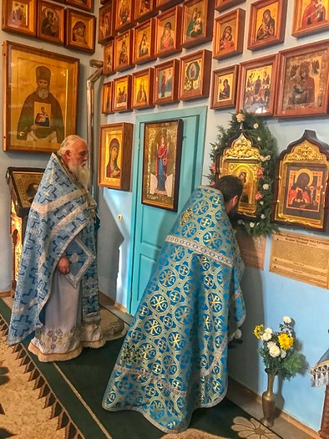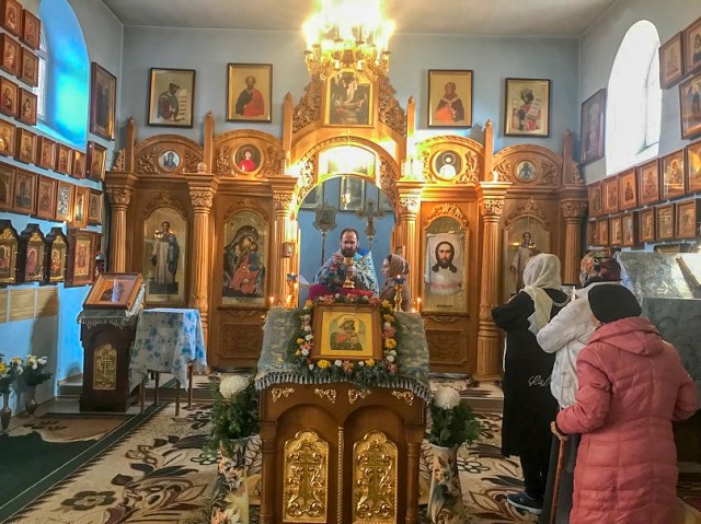 18 ноября в день празднования в честь иконы Божией Матери "Отчаянных единая Надежда" Божественную Литургию в приделе иконы Божией Матери «Мати Молебница» храма «Спорительницы хлебов» совершил благочинный Чаплинского округа наш настоятель протоиерей Иоанн Канинец в сослужение настоятеля храма святых мучениц Веры, Надежды, Любови и матери их Софии с. Надеждовка священноинока Галактиона (Гайналий). В своей проповеди отец Иоанн сердечно поздравил всех с праздником и пожелал каждому благодатного заступничества Божией Матери.