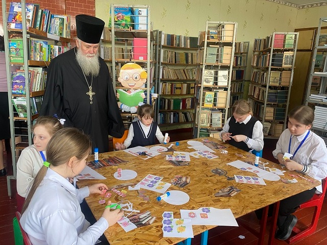 Затем он посетил школу в с. Хлебодаровка, встретился с ее руководством и передал для школьной библиотеки православную литературу.