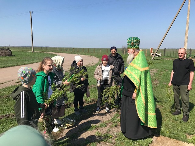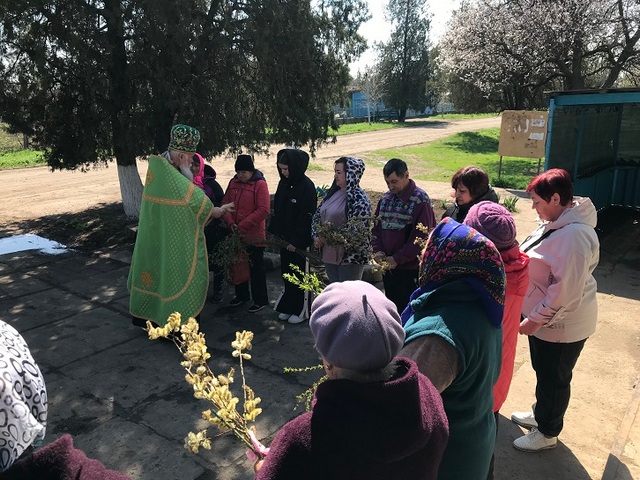 Затем состоялось освящение вербы - знамения победы над смертью и Воскресения Христа. Благочестивые христиане обыкновенно хранят освященные вербы в течение целого года, украшая ими в своих домах святые иконы. По традиции отец Иоанн посетил села Ильинку, Хлебодаровку, Молочное, Камыш, Питомник и Маркеево, где освятил вербу всем собравшимся.